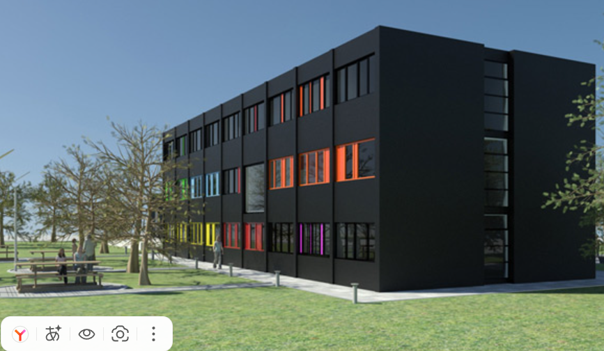 Посещение факультета изящных искусств 2021 год. Образовательный центр площадью 5800 кв. м с зеленой кровлей и внутренним двором для рисования .